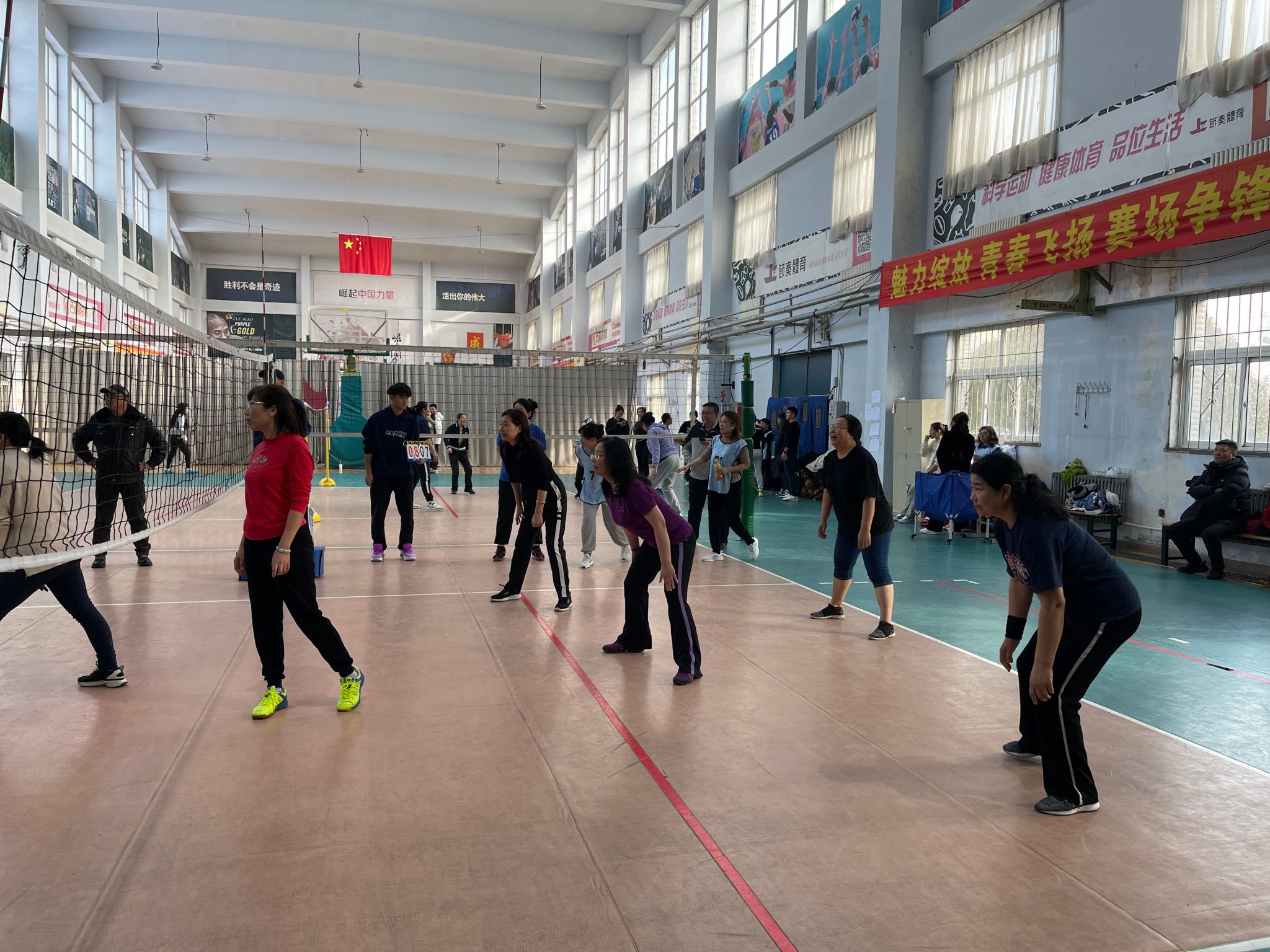 赛场上,运动员们充满活力,积极迎战,在比赛中使出看家本领,发球、起跳、拦网、扣球,每一次精彩配合和得分都赢得了观众的热烈欢呼。赛场之外,前来观赛的师生们自发组成啦啦队,此起彼伏的加油声坚定有力,整个比赛现场气氛热烈,充满了激情和活力。