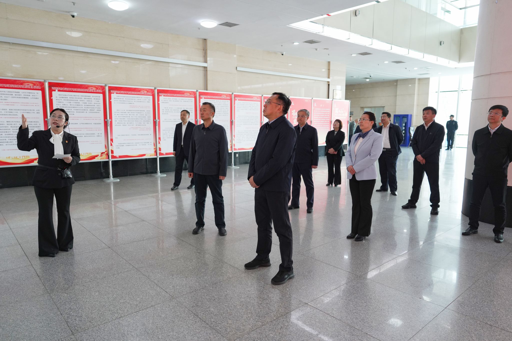 为贯彻落实全面从严治党战略部署,推进深入贯彻中央八项规定精神学习教育走深走实,进一步强化作风建设,增强廉洁自律意识,5月21日,学校领导班子全体成员前往教学综合楼二楼大厅,参观“作风建设永远在路上—深入贯彻中央八项规定精神学习教育”警示教育展。